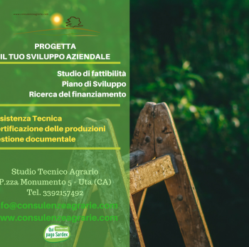 Progetta il tuo sviluppo aziendale Sono Federico Corona, titolare dello studio tecnico agrario www.consulenzeagrarie.com Fino al 15 Ottobre 2018, Ti propongo una consulenza gratuita per valutare insieme la possibilità di impostare un progetto organico di miglioramento della Tua azienda agricola. I servizi che offriamo sono: – Gestione burocratica e documentale; – Progettazione architettonica (fabbricati, serre e…